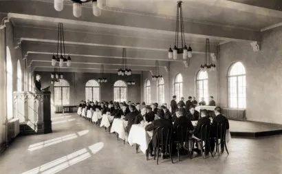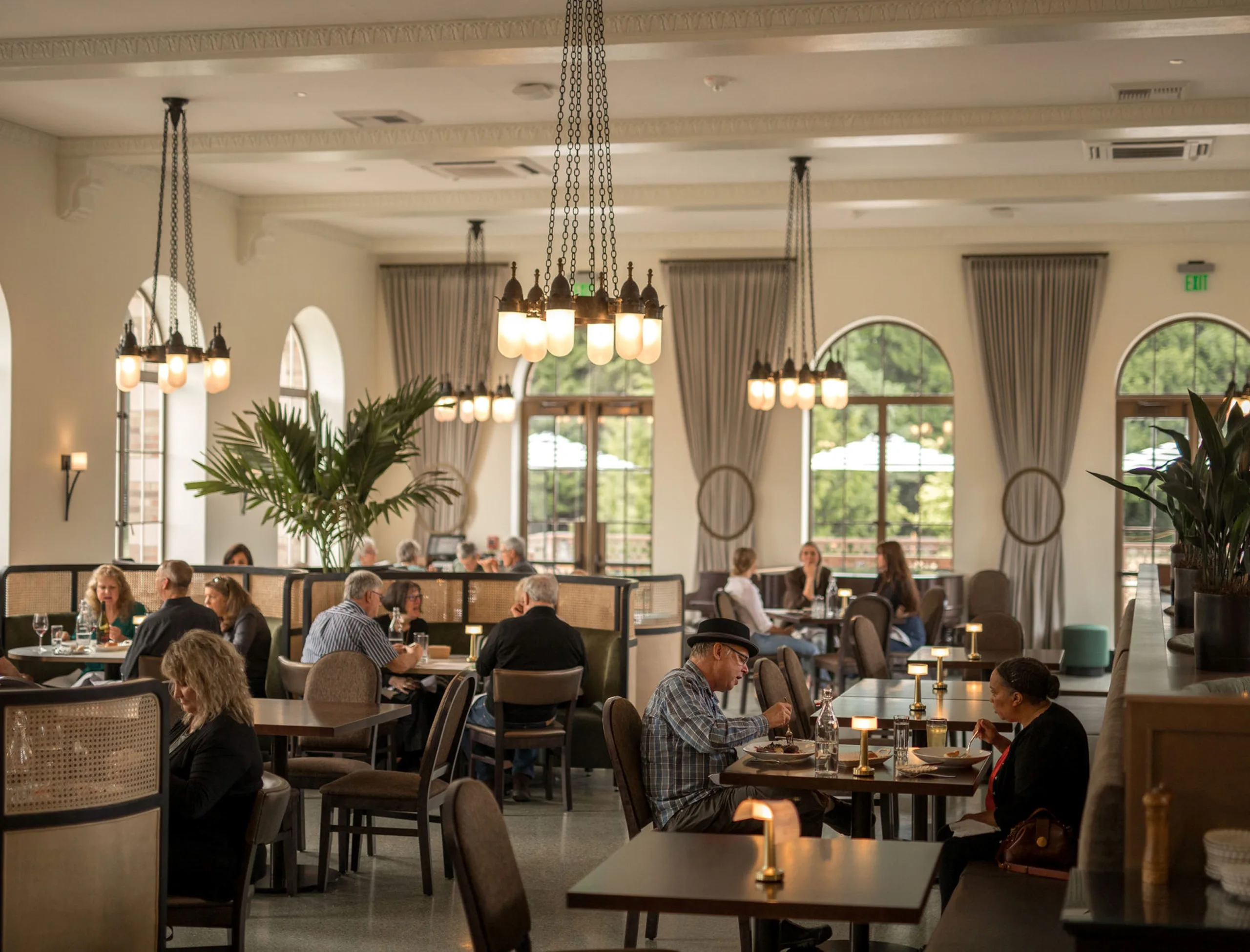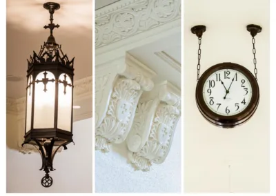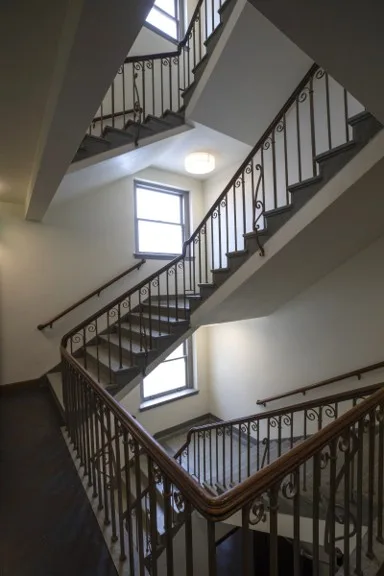 Preservation highlights include restoration of intricate exterior masonry, a terrazzo central staircase, and the Spanish tile roof, which was salvaged, reinstalled, and reinforced with a new membrane. The dining hall was reimagined with historically accurate, laser-cut tile flooring and updated systems, seamlessly blending old and new.