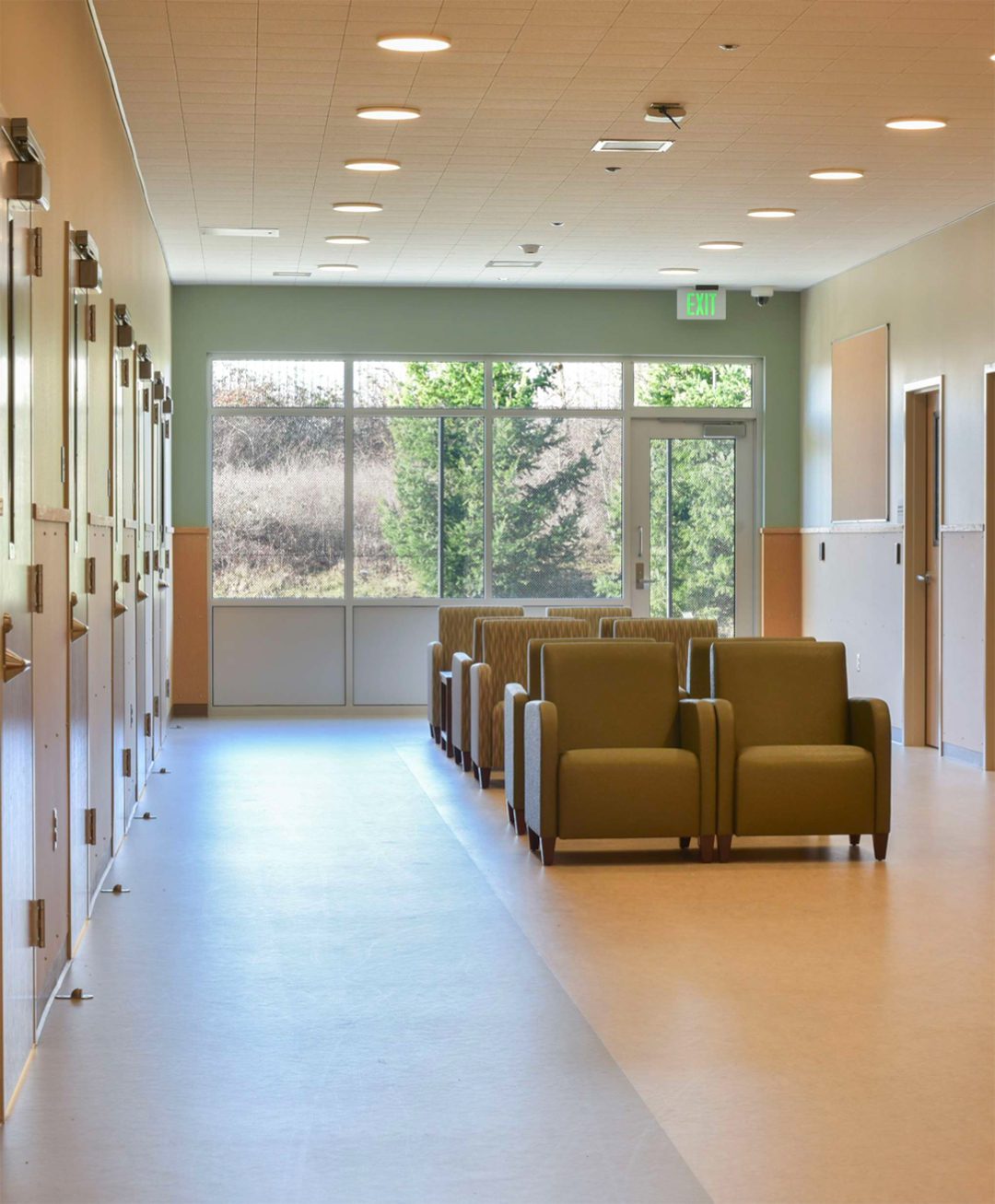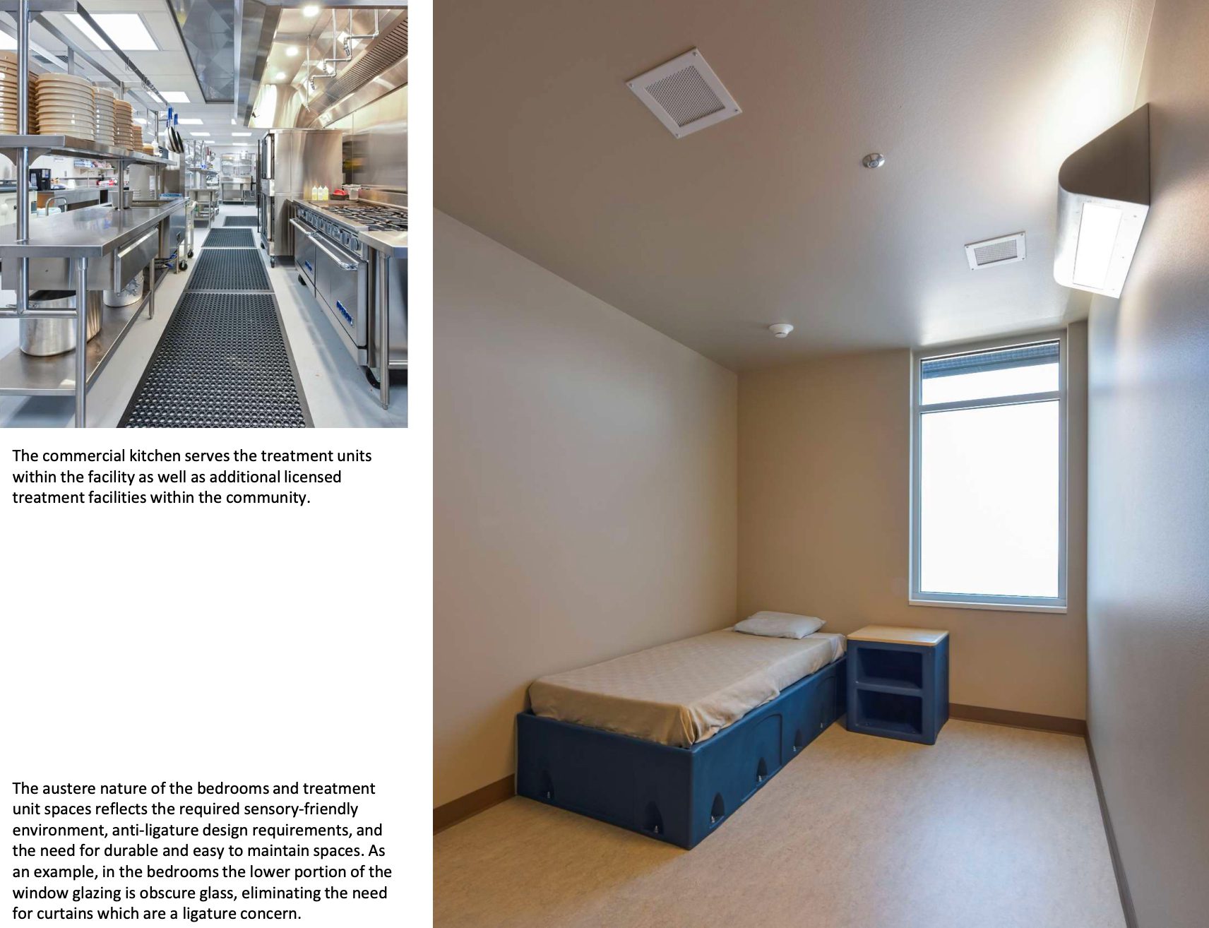 Whatcom County Crisis Stabilization Center Located in Bellingham, Washington Combined 16-bed behavior health treatment center and 16-bed substance abuse treatment center with support facilities, including a full service commercial kitchen.